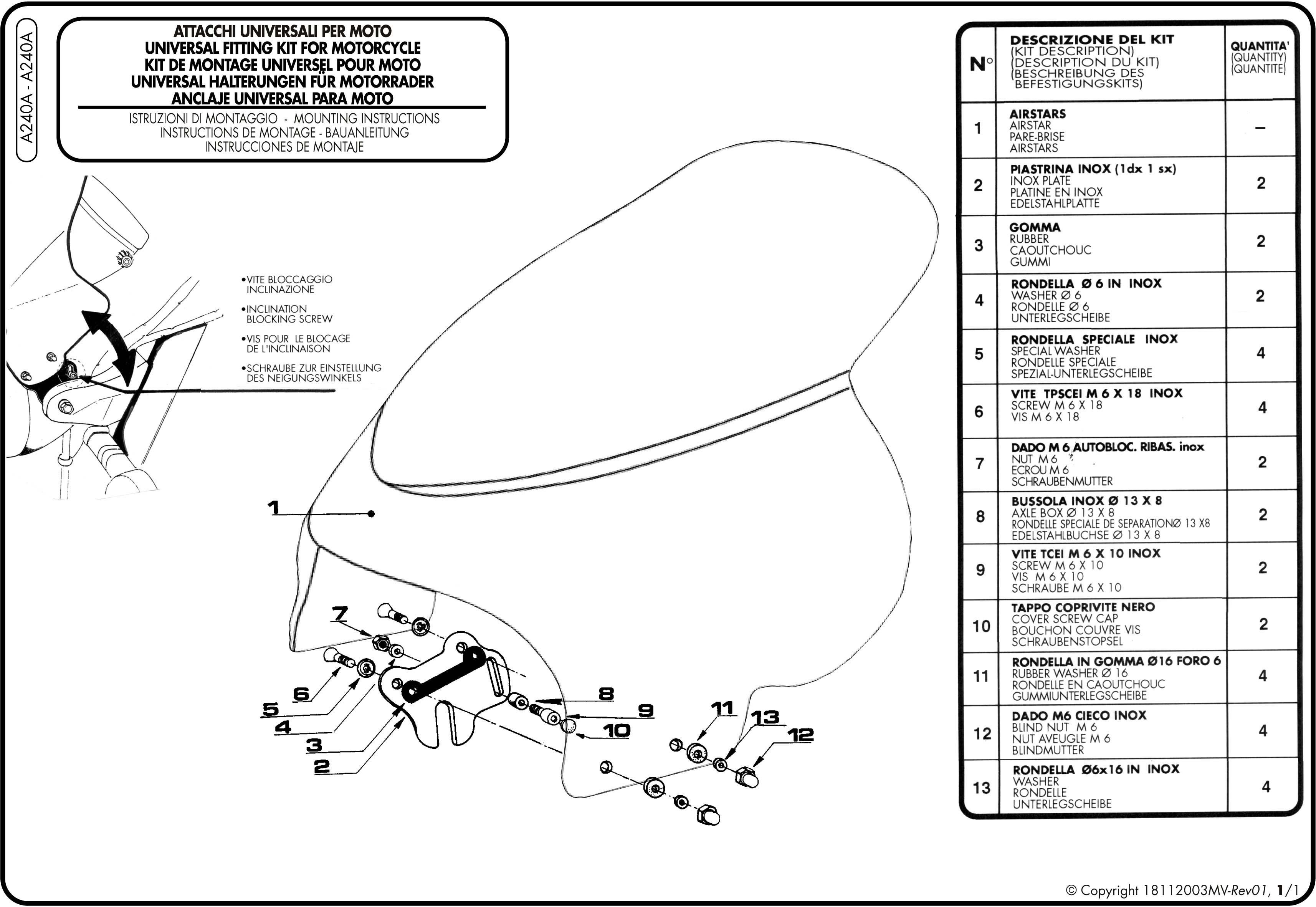 A240A montážní sada pro plexi 240Skladem 1 ks150 Kč/ ks124 Kč bez DPH