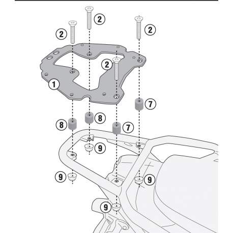 pro montáž kufru Monokey Givi dokupte plotnu M5,M7,M10 nebo M8,M9 hliník