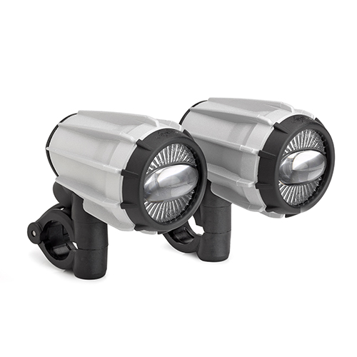 Sada dvou přídavných mlhových LED světlometů, každý o výkonu 14W (28W celkem), určená k montáži na padací rámy. Hliníkové tělo světlometů, černý lak. Dodáváno včetně objímek k uchycení na trubku kruhového průřezu o průměru 21 až 25 mm a kabeláže a vypínače na řídítka. Nutno propojit s baterií motocyklu - nezasahujte do stávají elektroinstalace motocyklu. Homologováno. Nahrazeno KS 321 od 06/2018.