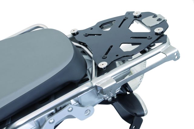 Univerzální plotna vhodná k montáži kufru topcase Trax na trubkový nosič. Např. pro motocykl Moto Guzzi Stelvio, BMW 1200 GS Adventure