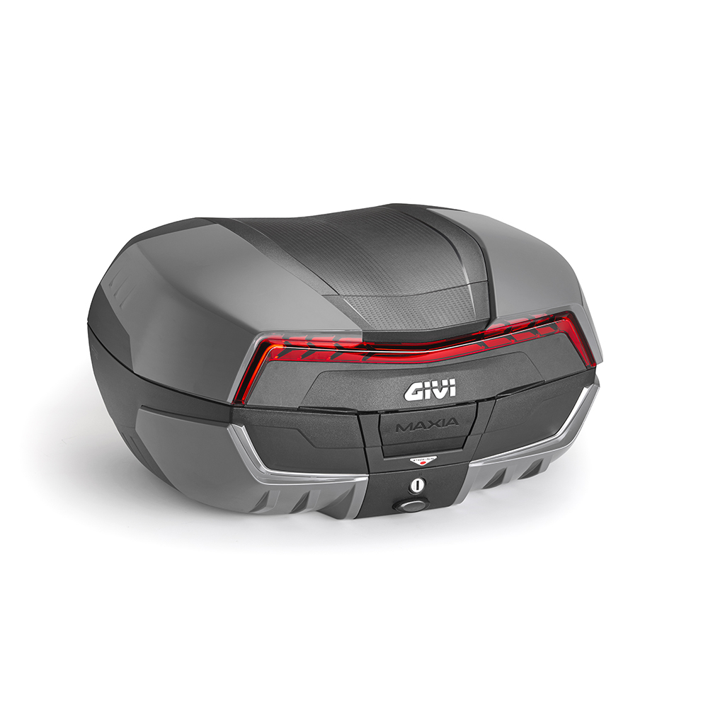 Další generace nejnovějšího a největšího plastového kufr od GIVI, model 2024. Kufr V 58 Maxia 5 je největším kufrem v nabídce, pojme 2 integrální přilby a jeho objem je 58 litrů, nosnost 10 kg. Rozměry výška 321 mm x šířka 598 mm x hloubka 494 mm (z pohledu umístění na horním nosiči). Modely V58N a V58NT jsou stříbrně lakovány. Tento kufr nabízí mnoho kvalitních technických řešení a bezkonkurenční prostor pro náklad.