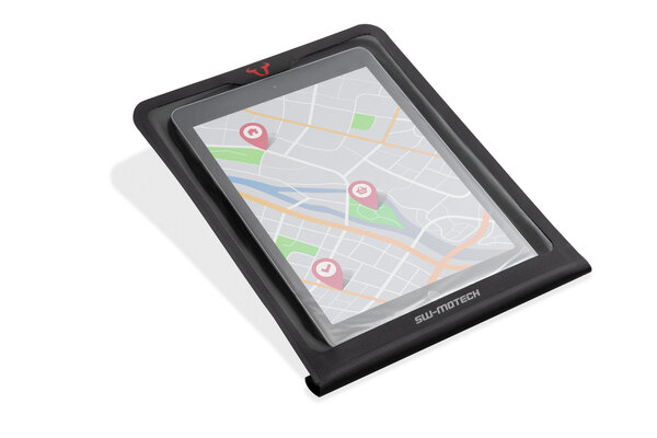 Vodotěsný Tablet-Drybag je správným přepravním řešením pro mapy a tablety na vacích pro nádrže PRO: se dvěma retenčními rameny je Tablet-Drybag vložen do systému MOLLE a dodatečně zajištěn elastickým páskem na sáčku. Polohu tablet-drybagu na nástavci MOLLE můžete upravit tak, aby vyhovovala vašim potřebám. Podrobné informace o tom, jak připojit Tablet -Drybag k nástavci MOLLE, naleznete v návodu k obsluze. Samotná tableta je vodotěsná v plastovém pouzdře s velkým čirým PVC oknem. S Tablet-Drybag lze na motocykl namontovat téměř všechna zařízení standardní velikosti pro bezpečnou navigaci. Alternativně lze Tablet-Drybag použít také pro konvenční silniční mapy.